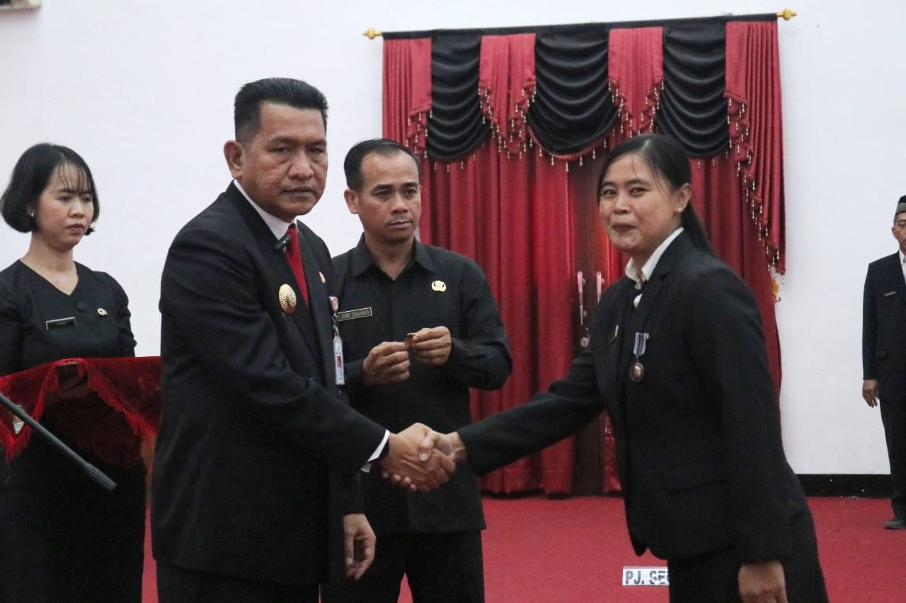 Pj. Bupati Landak Gutmen Nainggolan menyampaikan Satyalancana Karya Satya adalah sebuah tanda penghargaan yang diberikan pemerintah kepada Pegawai Negeri Sipil yang telah bekerja dengan penuh kesetiaan kepada Pancasila, Undang-Undang Dasar Republik Indonesia Tahun 1945, Negara dan Pemerintah serta dengan penuh pengabdian, kejujuran, kecakapan, dan disiplin secara terus menerus paling singkat 10, 20 dan 30 tahun.
