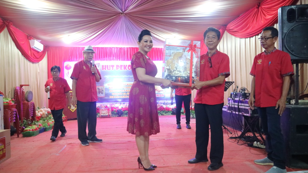 LANDAK– Bupati Landak periode 2017-2022 Karolin Margret Natasa bersama suami menghadiri perayaan Pek Kong Hati Murni Ngabang yang ke 17 tahun sekaligus perayaan ulang tahun dewa-dewi yakni Kam Thian Thai Ti, Nam Hoi Kuan Im, Thai Pak Kung, Kuan Shin Ti Kiun, Chol Shin Ja Ja, Shui Tet Sen Kiun dan Fuk Tet Liung Shin, di Kecamtan Ngabang, Kabupaten Landak, rabu (26/10/2022) malam.