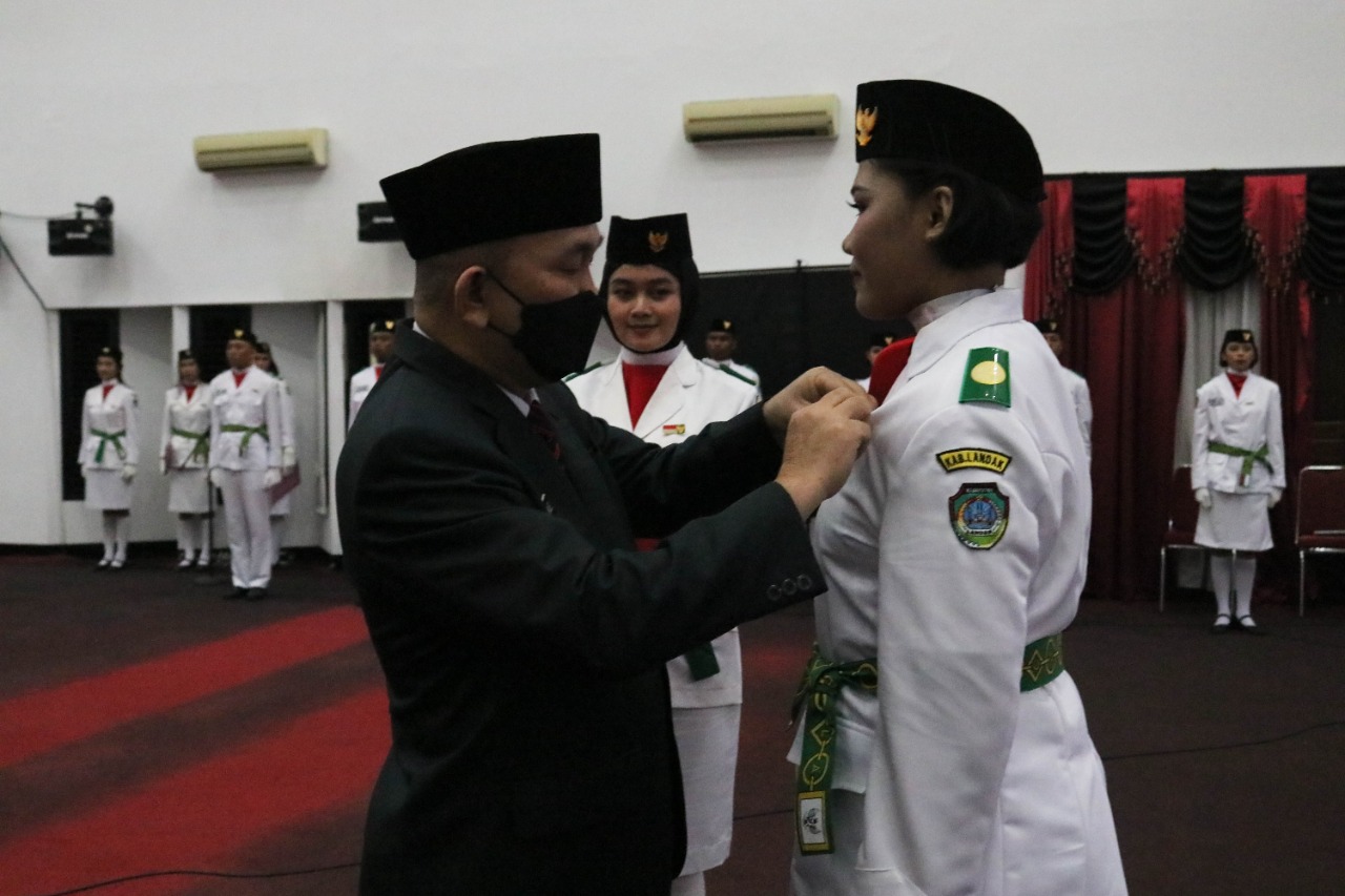 LANDAK – Pj. Bupati Landak Samuel mengukuhkan sebanyak 29 Paskibraka Kabupaten Landak Tahun 2022 yang nantinya akan bertugas menjadi Pasukan Pengibar Bendera Merah Putih pada Upacara Peringatan HUT Ke-77 Kemerdekaan Republik Indonesia tanggal 17 Agustus 2022 di Kantor Bupati Landak. Pengukuhan tersebut dilaksanakan di Aula Besar Kantor Bupati Landak. Senin (15-08-2022) malam.