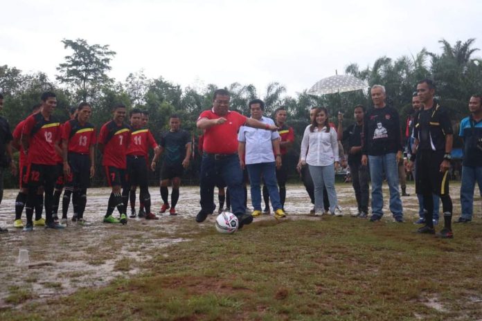 LANDAK- Ketua Dewan Perwakilan Rakyat Daerah (DPRD) Kabupaten Landak yang juga Ketua Komite Olahraga Nasional Indonesia (KONI) Kabupaten Landak Heri Saman membuka turnamen sepak bola Nahaya Cup III Tahun 2022 dalam rangka memperingati Hari Sumpah Pemuda ke 94 Minggu (02/10).