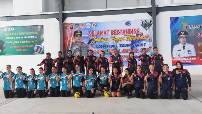 LANDAK – Sebanyak 44 tim yang terdiri atas 25 tim voli putra dan 19 tim voli putri berlaga dalam volleyball tournamet Kapolres Landak Cup dalam rangka memperingati Hari Bhayangkara Ke – 78 Tahun 2024