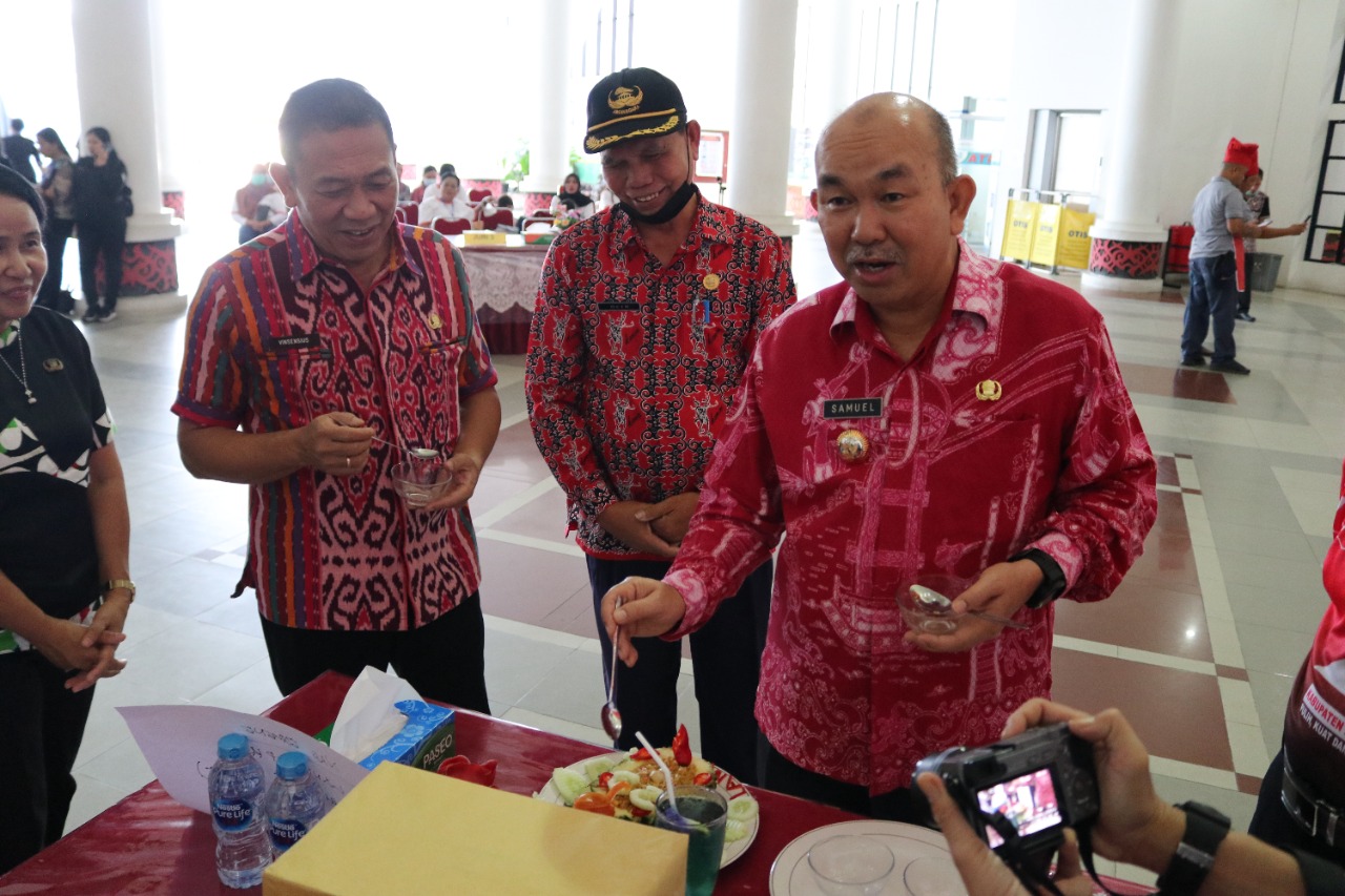 “Hari ini bapak-bapak khususnya di lingkungan sekretariat daerah diuji kemampuan dan kepandaiannya untuk memasak dan menghias nasi goreng. Saya yakin dan percaya bahwa yang tampil ini yang sudah mahir dan tidak akan mengecewakan dewan juri. Saya harap dewan juri untuk objektif,” ujar Samuel.