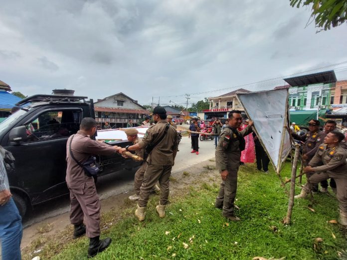 “Hari ini Bawaslu berinisiatif mencoba menegakan berkaitan dengan SK KPU tersebut, oleh karena itu kemudian dilakukan pembersihan APK sebagaimana titik-titik yang dilarang dan tadi sudah kita lakukan dan saya berfikir ada yang tidak puas dengan hal ini, tetapi kita mencoba menjalai bersama apa yang telah kita sepakati bersama,” jelas Musa.