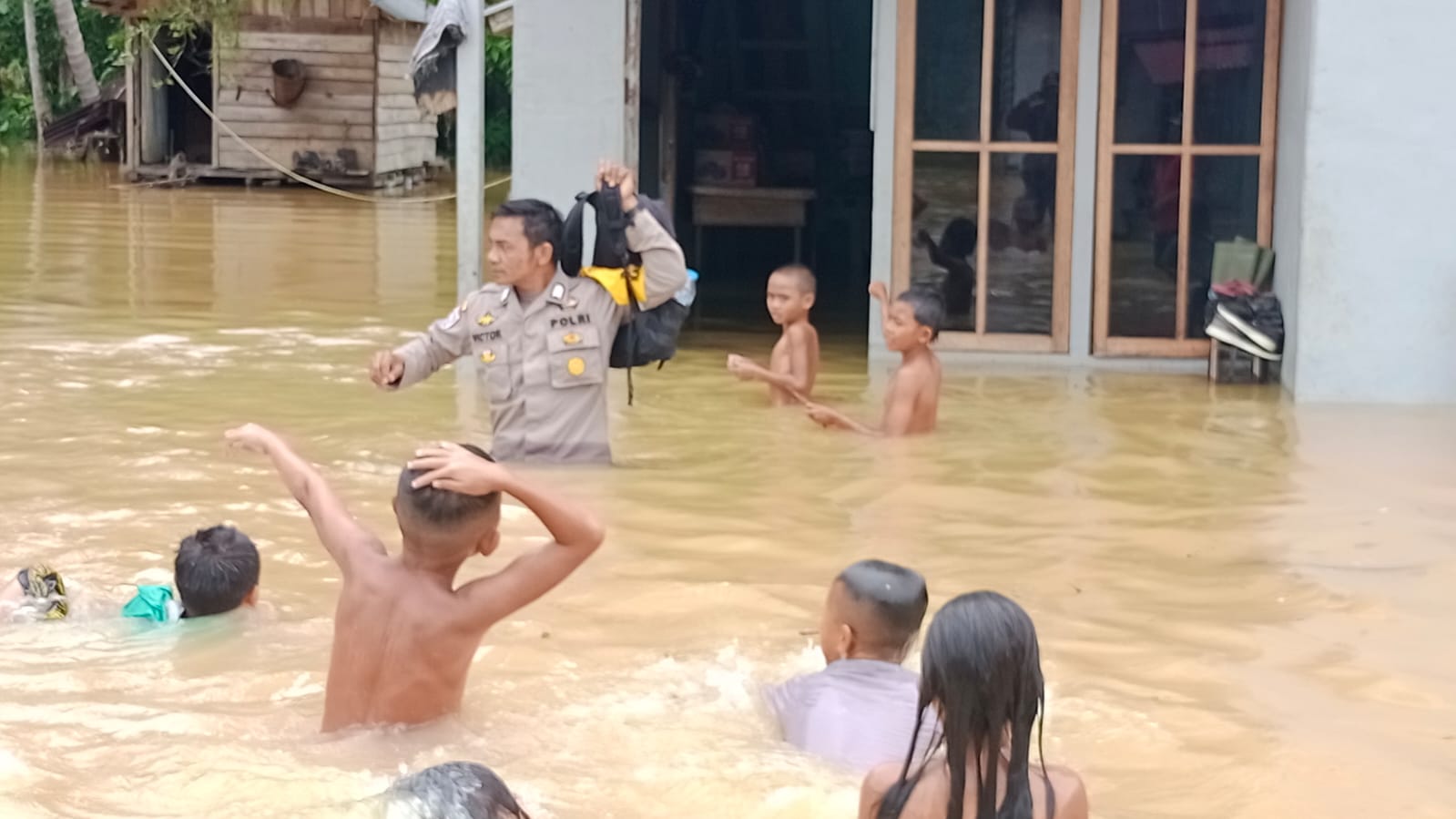 “Jumlah rumah warga yang terdampak banjir 68 buah dan ketinggian air didalam rumah warga 10-40 cm. Untuk sementara warga yang mengungsi tidak ada,” papar Bripka Victorious Pridoni.