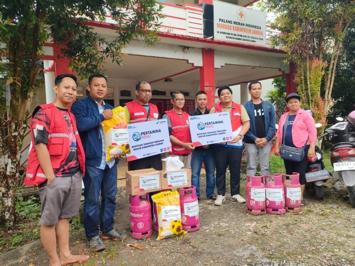 LANDAK – PT Pertamina Sales Area Kalbar bersama anggota Perhimpunan Wiraswasta Nasional Minyak dan Gas Bumi (Hiswana Migas) Kabupaten Landak menyerahkan bantuan bagi warga terdampak banjir, Minggu (26/01/2025).