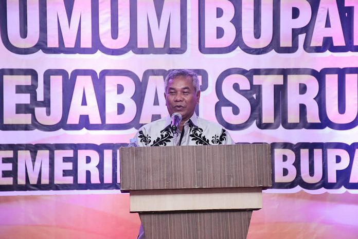 KETAPANG- Bupati Ketapang Martin Rantan didampingi Wakil Bupati Ketapang Farhan memberikan pengarahan umum kepada pejabat struktural di lingkungan Pemerintah Kabupaten Ketapang, Selasa (25/1/2022).