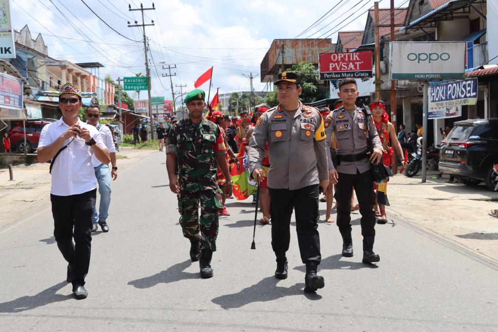 LANDAK – Kapolres Landak AKBP I Nyoman Budi Artawan mengikuti kegiatan pawai budaya dalam rangka naik dango ke-38 yang melibatkan 27 kontingen dari berbagai kecamatan di dalam dan luar Kabupaten Landak, Rabu (26/04/2023).