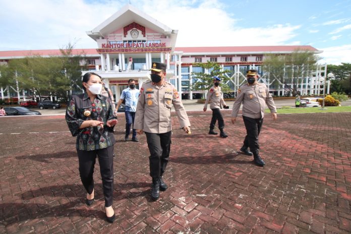 Bupati Landak Karolin Margret Natasa saat menyambut kedatangan Kapolda Kalbar Irjen Pol Suryanbodo Asmoro ke Kabupaten Landak