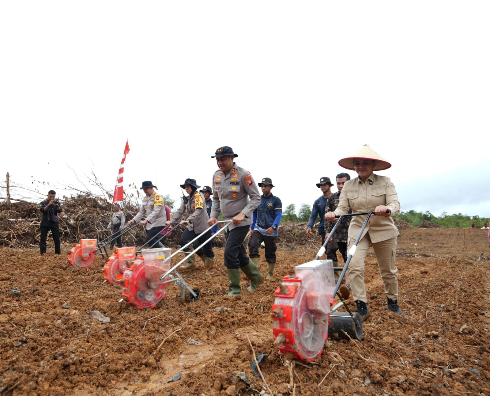 LANDAK – Bupati Landak Karolin Margret Natasa mendampingi Kapolda Kalimantan Barat Irjen Pol. Pipit Rismanto pada kegiatan asistensi Gugus Tugas Ketahanan Pangan Polda Kalbar bersama Pemerintah Kabupaten Landak yang berlokasi eks PT.Sinar Dinamika Kapuas, Desa Nyiin, Kecamatan Jelimpo, Kabupaten Landak, Kalimantan Barat, kamis (20/11/2025).