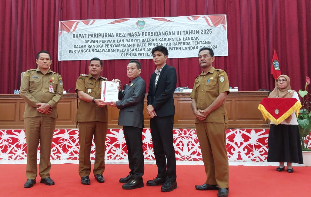 LANDAK – Dewan Perwakilan Rakyat Daerah (DPRD) Kabupaten Landak menggelar rapat paripurna Laporan Pertanggungjawaban Pelaksanaan Anggaran Pendapatan dan Belanja Daerah Kabupaten Landak Tahun Anggaran 2024 pada Senin (16/06/2025).