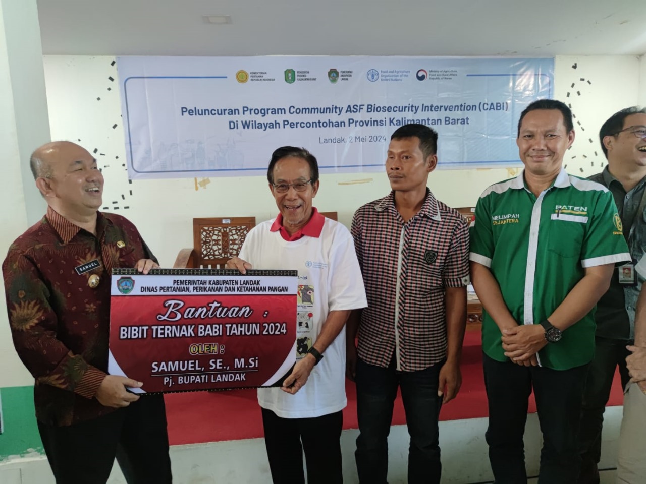 LANDAK – Pj. Bupati Landak Samuel, membuka kegiatan peluncuran program community ASF Biosecurity Intervention (CABI) di wilayah percontohan Provinsi Kalimantan Barat yang dilaksanakan di aula Dinas PPKP Kabupaten Landak, Kamis (02/05/2024).