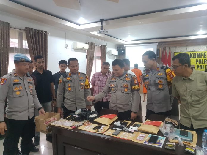 LANDAK – Kepolisian Polres Landak menggelar konferensi pers pengungkapan sejumlah kasus tindak kejahatan yang terjadi sepanjang Januari hingga Februari 2025 yang dilaksanakan di Aula Mapolres Landak, Kamis (20/02/2025).
