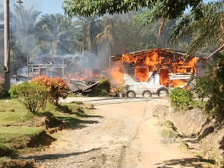 SUMATRA UTARA- Tiga unit rumah warga di Dusun Sijambu, Desa Sisumut, Kecamatan Kotapinang, Kabupaten Labuhanbatu Selatan, Provinsi Sumatra Utara hangus dilalap sijago merah sekitar pukul 09.10 WIB, Minggu (19/6/2022).