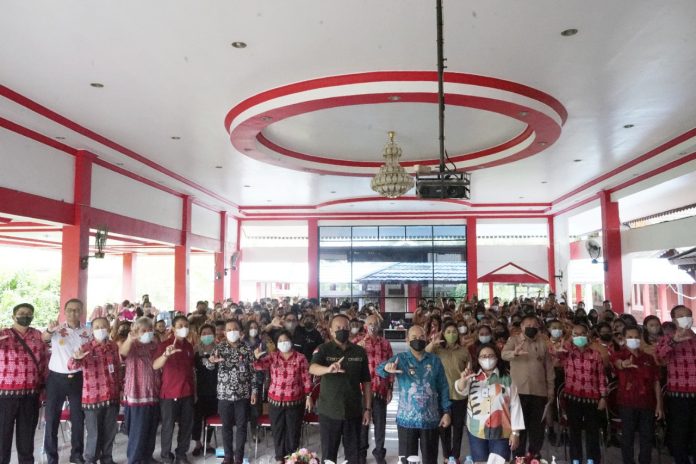 LANDAK- Pj Bupati Landak Samuel melauncing tabungan simpanan pelajar program satu rekening pelajar kepada para pelajar SD dan SMP se Kabupaten Landak yang dilaksanakan di aula Pendopo Bupati Landak Jum’at (29/07/2022).