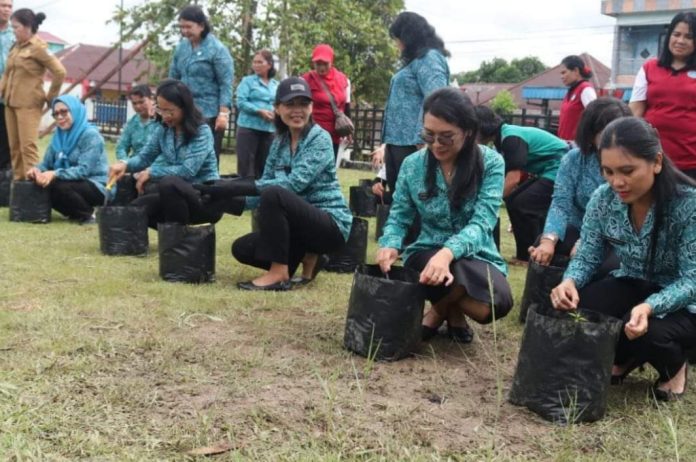 LANDAK – Pj. Ketua TP. PKK Kabupaten Landak Rosalia Samuel mengikuti Gerakan Tanam Cabai (Gertam Cabai) PKK serentak pada peringatan HKG-PKK Ke-52 Tahun 2024 yang dilaksanakan di pendopo Bupati Landak, Senin (04/03/2024).