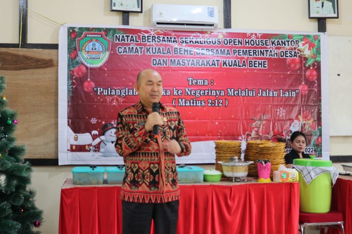 LANDAK – Pj Bupati Landak Samuel menghadiri acara natal bersama sekaligus open house Kantor Camat Kuala Behe yang dilaksanakan di Aula Kantor Camat Kuala Behe, Kamis (29/12/2022).