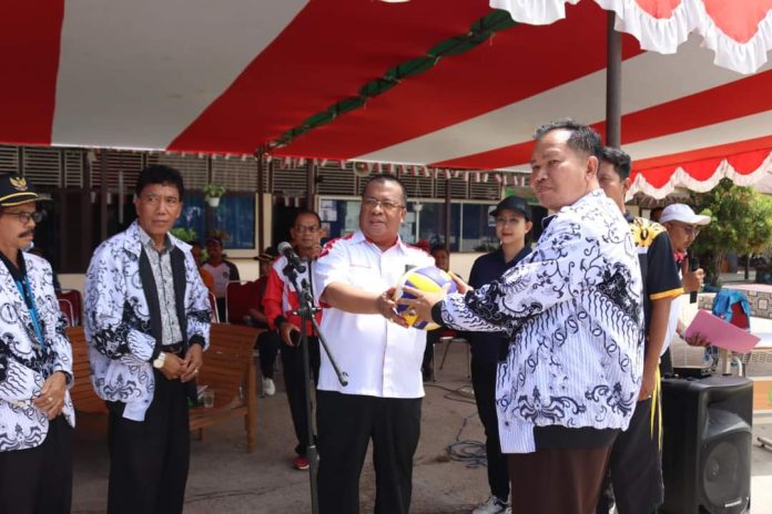 LANDAK – Ketua Dewan Perwakilan Rakyat Daerah (DPRD) Kabupaten Landak yang juga selaku Ketua Komite Olahraga Nasional Indonesia (KONI) Kabupaten Landak, Heri Saman membuka kegiatan Pekan Olahraga dan Seni (PORSENI) Persatuan Guru Republik Indonesia (PGRI) Kabupaten Landak, di SMAN 01 Ngabang, Jumat (10/11/2023)