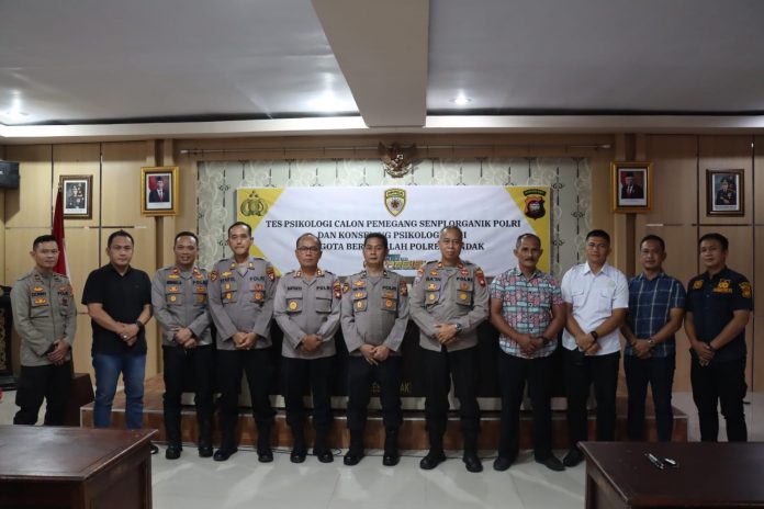 LANDAK – Tim psikologi Ro SDM Polda Kalimantan Barat yang diipimpin langsung oleh Kompol Teguh melaksanakan tes psikologi di Polres Landak Selasa (08/11/2022).