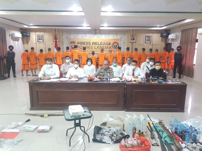 LANDAK- Kepolisian Polres Landak menggelar Pres Release pengungkapan sejumlah kasus yang terjadi sepanjang digelarnya kegiatan Operasi Pekat Kapuas 2022, Senin (25/4/2022).