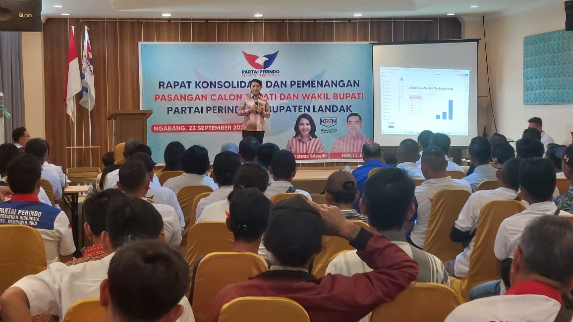Pernyataan itu disampaikan Karolin usai menghadiri rapat konsolidasi dan pemenangan pasangan calon Bupati dan Wakil Bupati Partai Perindo Kabupaten Landak yang digelar di aula Hotel Grand Landak, Senin (23/09).