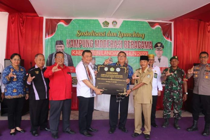 LANDAK – Ketua Dewan Perwakilan Rakyat Daerah (DPRD) Kabupaten Landak Heri Saman menghadiri kegiatan sosialisasi dan launching Kampung Moderasi Beragama Kabupaten Landak Tahun 2023 yang bertempat di rumah Adat Melayu Karangan, Senin (17/07/2023).