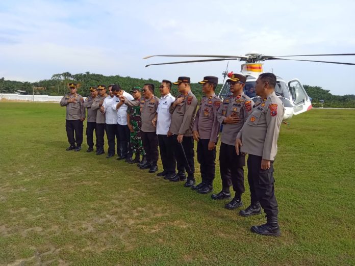 Kedatangan Kapolda dengan menggunakan helikopter tersebut, disambut langsung oleh Kapolres Labuhanbatu AKBP Arlia Anhar Rangkuti bersama Bupati Labusel Edimin, Sekda Labusel Heri Wahyuri, Waka Polres Labuhanbatu Kompol Hermansyah, para OPD, Kapolsek Kotapinang Kompol Bambang Gunanti hutabarat, Kabag OPS Kompol D Sidauruk dan personil polres dan personil polsekta lainnya.