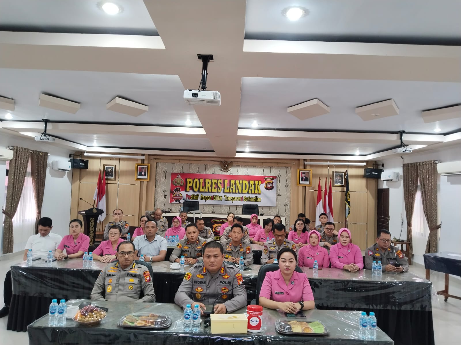 LANDAK – Kapolres Landak AKBP I Nyoman Budi Artawan, bersama Waka Polres Landak Kompol Sukma Pranata, dan Ketua Cabang Bhayangkari Landak Nina Nyoman Budi Artawan, serta para Pejabat Utama (PJU) Polres Landak dan personel mengikuti zoom meeting bersama Kapolda Kalimantan Barat Irjen Pol Pipit Rismanto terkait situasi terkini dilingkungan instansi Polri.