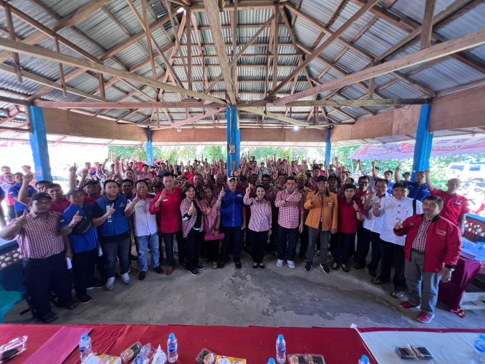 LANDAK- Pasangan calon Bupati dan Wakil Bupati Landak nomor 1 Karolin-Erani menghadiri pengukuhan dan deklarasi Tim Pemenangan Karolin-Erani (KREN) Kecamatan Mandor dan Desa se-Kecamatan Mandor  di Desa Mandor, Kecamatan Mandor, selasa (08/10/24).