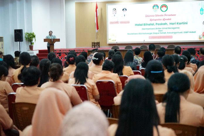 Pesan itu disampaikan Karolin saat menghadiri pertemuan rutin bulanan Dharma Wanita Persatuan (DWP) Kabupaten Landak yang dirangkai dengan halal bihalal, perayaan Paskah, Hari Kartini, serta sosialisasi gizi keluarga bertema “Dapur Sehat, Keluarga Kuat, DWP Hebat”, Kamis (16/4/2026), di Aula Besar Kantor Bupati Landak. Agenda itu juga menghadirkan narasumber gizi dari RSUD Landak, Tri Hidayat.