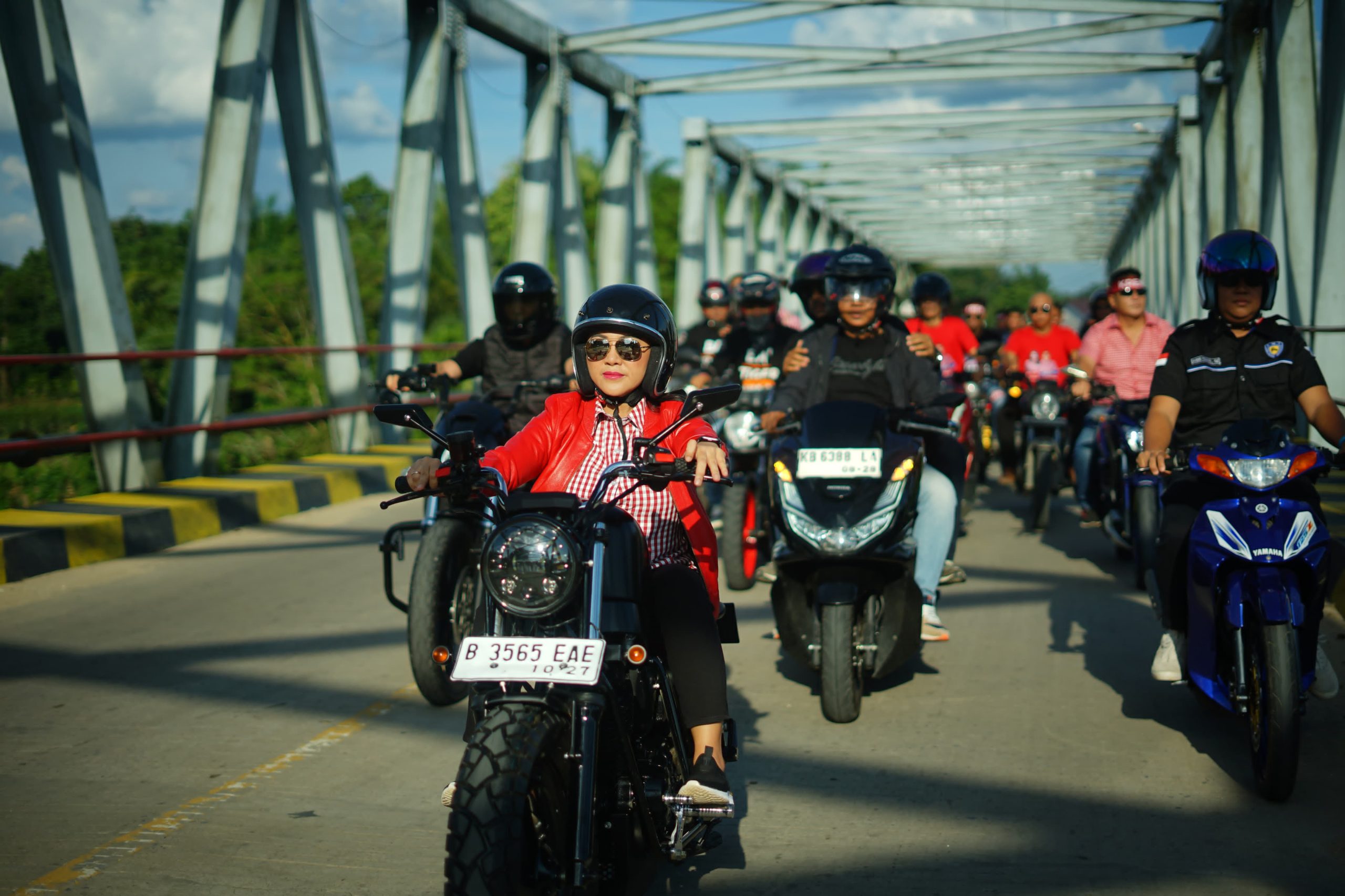 Sebelum menuju GOR Bujakng Nyangko, rombongan iring-iringan bikers bersama Calon Bupati Landak Karolin Margret Natasa terlebih dahulu melakukan touring dari lokasi villa bukit Cornelis menuju lokasi GOR.