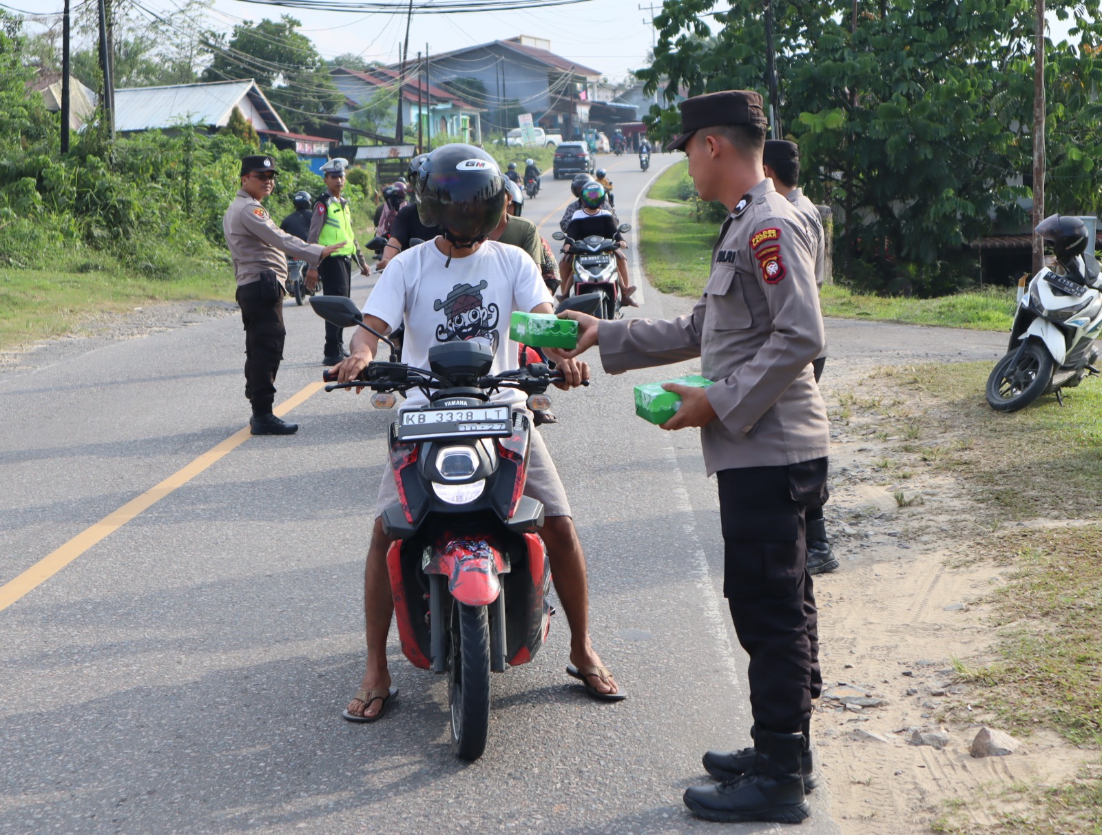 Sedikitnya ada 100 paket takjil yang dibagikan para anggota kepada pengguna jalan. Meski demikian tak sedikit pengguna jalan yang berhenti sebab para pengguna jalan mengira sedang adanya kegiatan operasi Kepolisian yang dilaksanakan di depan Mako Polres Landak.