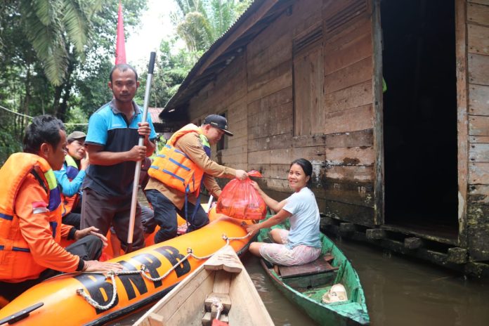 LANDAK – Pj. Bupati Landak Samuel, turun langsung menyerahkan bantuan banjir kepada warga terdampak banjir di Dusun Nahaya, Desa Amboyo Selatan, dan Desa Pak Mayam Kecamatan Ngabang, Kabupaten Landak, Kalimantan Barat, Jumat (12/01/2024).