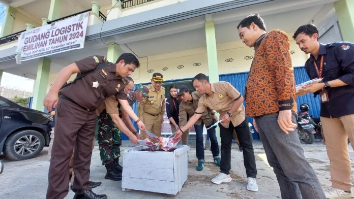 LANDAK – Komisi Pemilihan Umum (KPU) Kabupaten Landak melakukan pemusnahan terhadap sejumlah surat suara rusak yang dilaksanakan di depan gudang logistik KPU Landak pada Selasa (26/11/2024).