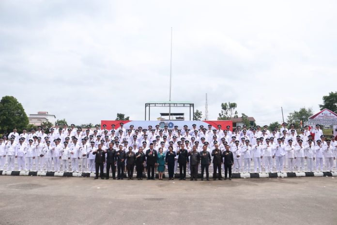 LANDAK – Pj. Bupati Landak Gutmen Nainggolan mengukuhkan perpanjangan masa jabatan kepala desa di Kabupaten Landak untuk perpanjangan masa jabatan periode 2020-2026 dan 2022-2028 yang dilaksanakan di halaman Kantor Bupati Landak, Kamis (15/08/2024).