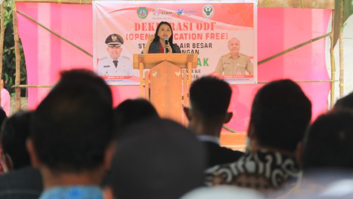 “Buang air besar, buang air kecil pada tempatnya atau dengan jamban atau wc itu tanda-tanda hidup bersih dan sehat, kemudian juga tanda-tanda masyarakatnya sudah maju, kalau masih dihutan bearti masih primitif. Jadi, ODF atau STOP BABS merupakan program dunia yakni program dari WHO, bukan program kabupaten saja dan bukan program Indonesia tetapi dunia, ini memang menjadi keprihatinan dunia karena masih banyak penyakit-penyakit yang disebabkan oleh pencemaran  kotoran manusia menjadi persoalan Kesehatan,” ucap Karolin.
