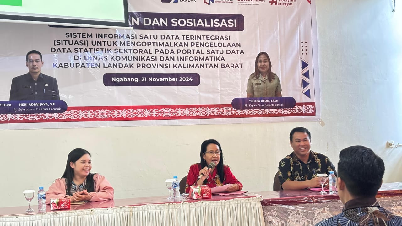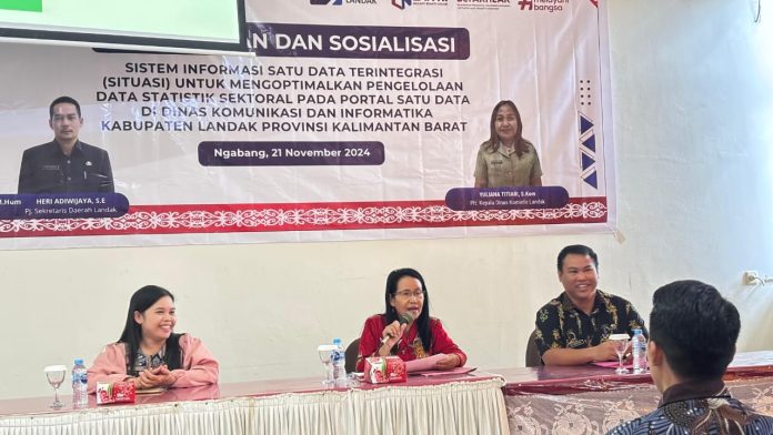 LANDAK – Pj. Sekda Landak yang diwakili Asisten Administrasi Umum Sekda Landak Theresia Limawardani melaunching Sistem Informasi Satu Data Terintegrasi (SITUASI) pada kegiatan peluncuran dan sosialisasi Sistem Informasi Satu Data Terintegrasi (SITUASI) untuk mengoptimalkan pengelolaan data statistik sektoral pada portal satu data di Dinas Komunikasi dan Informatika Kabupaten Landak, Kamis (21/11/2024).