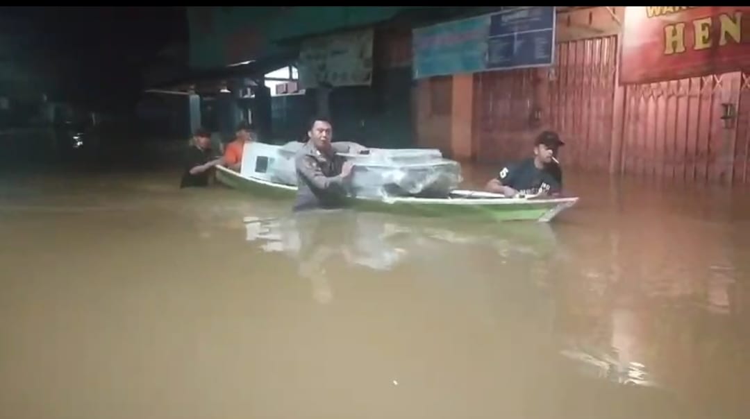 Selain merendam sejumlah permukiman warga, banjir yang terjadi juga memutus akses jalan disejumlah titik diwilayah tersebut. Akibatnya pendistribusian logistik pilkada pun terpaksa dilakukan petugas dengan menggunakan perahu.