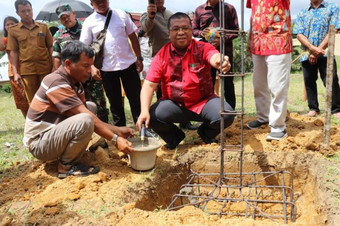 LANDAK – Ketua Dewan Perwakilan Rakyat Daerah (DPRD) Kabupaten Landak Heri Saman menghadiri peletakan batu pertama pembangunan Gereja Katolik Santo Timotius Stasi Seledok, di Desa Lamoanak, Kecamatan Menjalin, Kabupaten Landak Rabu (04/12/2023).