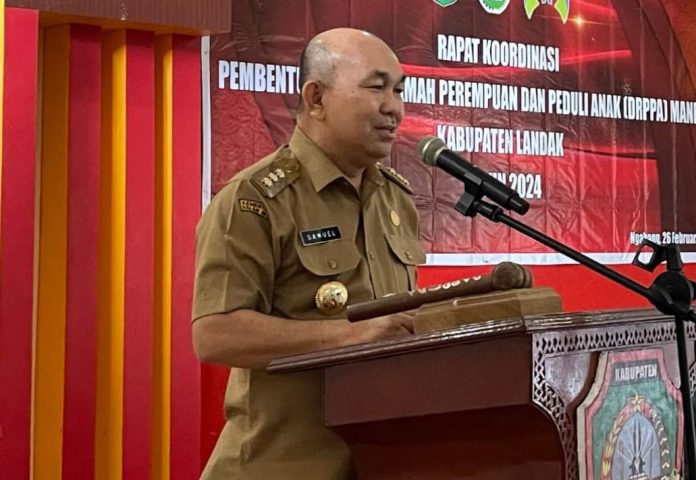 LANDAK – Pj. Bupati Landak Samuel membuka rapat koordinasi pembentukan Desa Ramah Perempuan dan Peduli Anak (DRPPA) Mandiri Kabupaten Landak yang dilaksanakan di aula Bappeda Landak, Senin (26/02/2024).