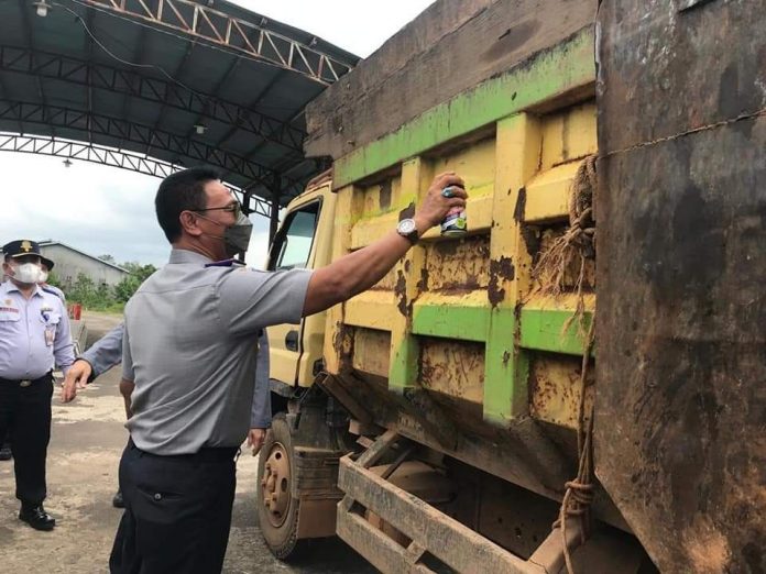 KETAPANG- Guna menjaring truk ODOL (Over Dimension Over Loading), Pemerintah Kabupaten Ketapang melalui Dinas Perhubungan Ketapang bersama BPTD Wilayah Kalbar mengelar razia di Unit Pelaksana Penimbangan Kendaraan Bermotor (UPPKB) Satong Ketapang, Jumat (28/1/2022).