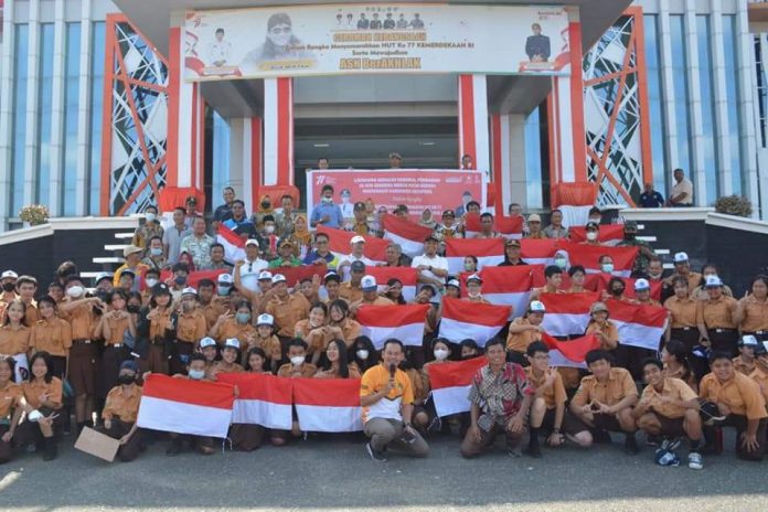 KETAPANG- Asisten Sekda Ketapang Bidang Perekonomian dan Pembangunan Syamsul Islami menghadiri kegiatan gerakan 10 juta Bendera Merah Putih, bertempat di halaman Kantor Bupati Ketapang, Jum’at (12/08/2022)