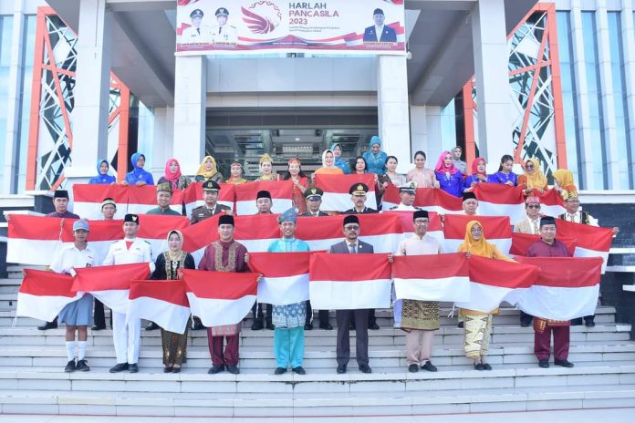 Pada peringatan hari lahirnya pancasila tersebut, Wabup juga melounching gerakan sepuluh juta bendera merah putih yang diserahkan secara simbolis kepada camat dan lurah.