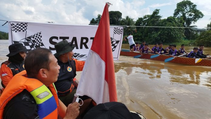 LANDAK – Sekretaris Daerah Kabupaten Landak Vinsensius menghadiri kegiatan lomba sampan Dragon Boat Cup 1 dalam rangka kegiatan ziarah dan tumpang negeri ke-XXII, di Dusun Raiy, Desa Raja, Kecamatan Ngabang, Kabupaten Landak Sabtu (12/11).