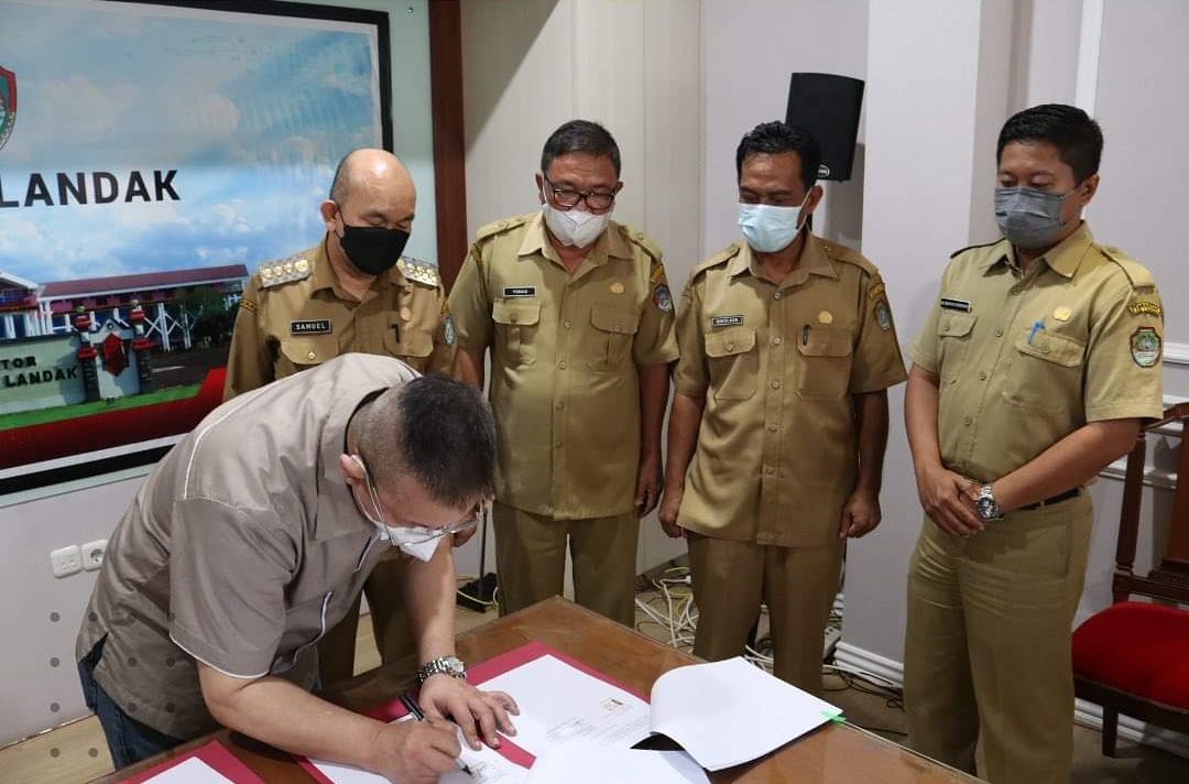 LANDAK- Pemerintah Daerah Kabupaten Landak melakukan penandatanganan (MOU) dan perjanjian kerjasama antara RSUD Landak dengan PT. Multi Gas Medika (MGM) terkait penyediaan peralatan pengadaan oksigen di RSUD Landak, Senin (30/05/2022).