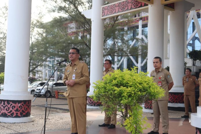 LANDAK – Pj. Bupati Landak Gutmen Nainggolan memimpin apel rutin Senin pagi yang dilaksanakan di halaman Kantor Bupati Landak, Senin (16/12/2024).