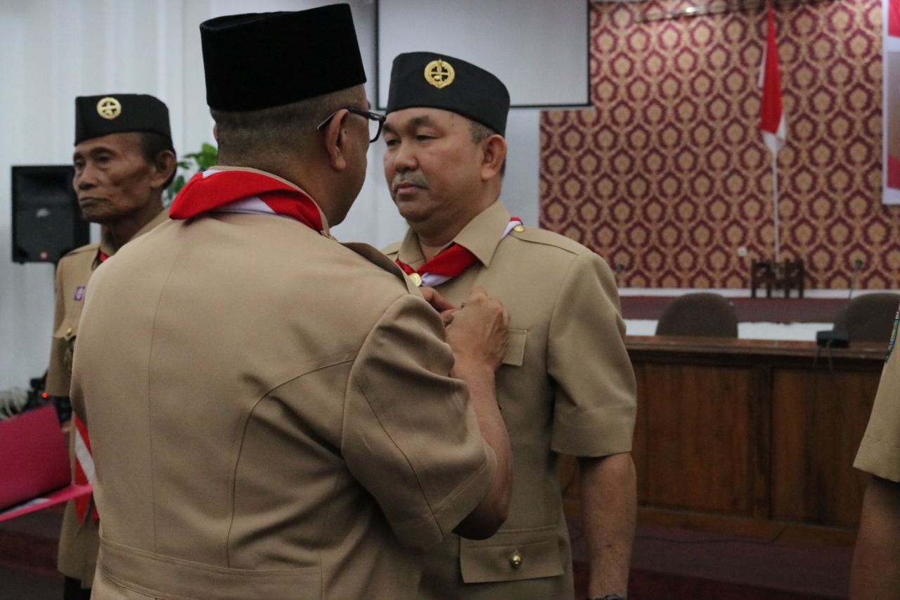 LANDAK – Pj. Bupati Landak Samuel, dilantik sebagai Ketua Majelis Pembimbing Cabang Gerakan Pramuka Kabupaten Landak oleh Ketua Kwartir Daerah Gerakan Pramuka Provinsi Kalimantan Barat dalam acara Pelantikan Ketua Majelis Pembimbing Cabang Gerakan Pramuka Kabupaten Landak Masa Bhakti 2020-2025 dan Penganugerahan Tanda Penghargaan Orang Dewasa (TPOD) Gerakan Pramuka Tahun 2022, di Aula Besar Kantor Bupati Landak. Senin, (19/12/2022).