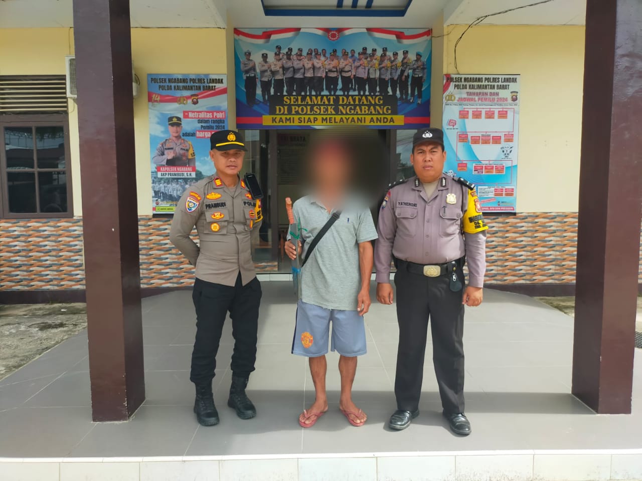 “Saat ini masih berlangsung operasi pekat, sehingga anggota yang diberi surat perintah, melaksanakan razia didepan Mako Polsek Ngabang dengan sasaran senjata tajam, miras, dan narkoba”, ungkap Kapolsek.
