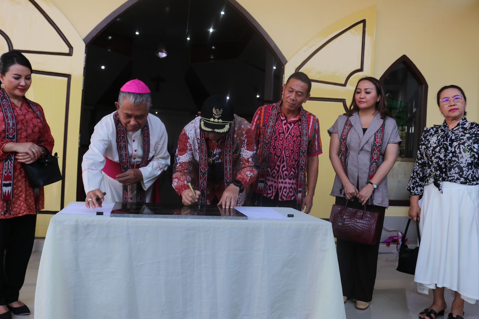“Tadi disampaikan juga bahwa banyak sumber-sumber dana yang ikut andil dan berkontribusi untuk mendukung pembangunan gereja ini. Ada dari Pemerintah Provinsi Kalimantan Barat dan juga dari Pemerintah Kabupaten Landak dimana pada saat itu Ibu dr. Karolin Margret Natasa, yang menjabat sebagai Bupati Kabupaten Landak. Ini adalah bentuk dari kebersamaan seluruh komponen masyarakat bahu membahu dan berkontribusi dalam pembangunan gereja ini sehingga menjadi sangat representatif,” sambung Samuel.