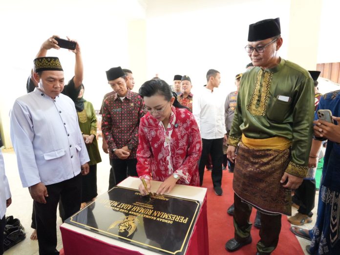 LANDAK – Bupati Landak Karolin Margret Natasa meresmikan Rumah Adat Melayu Kabupaten Landak di kawasan Stadion Patih Gumantar, Ngabang, Sabtu (18/4/2026).