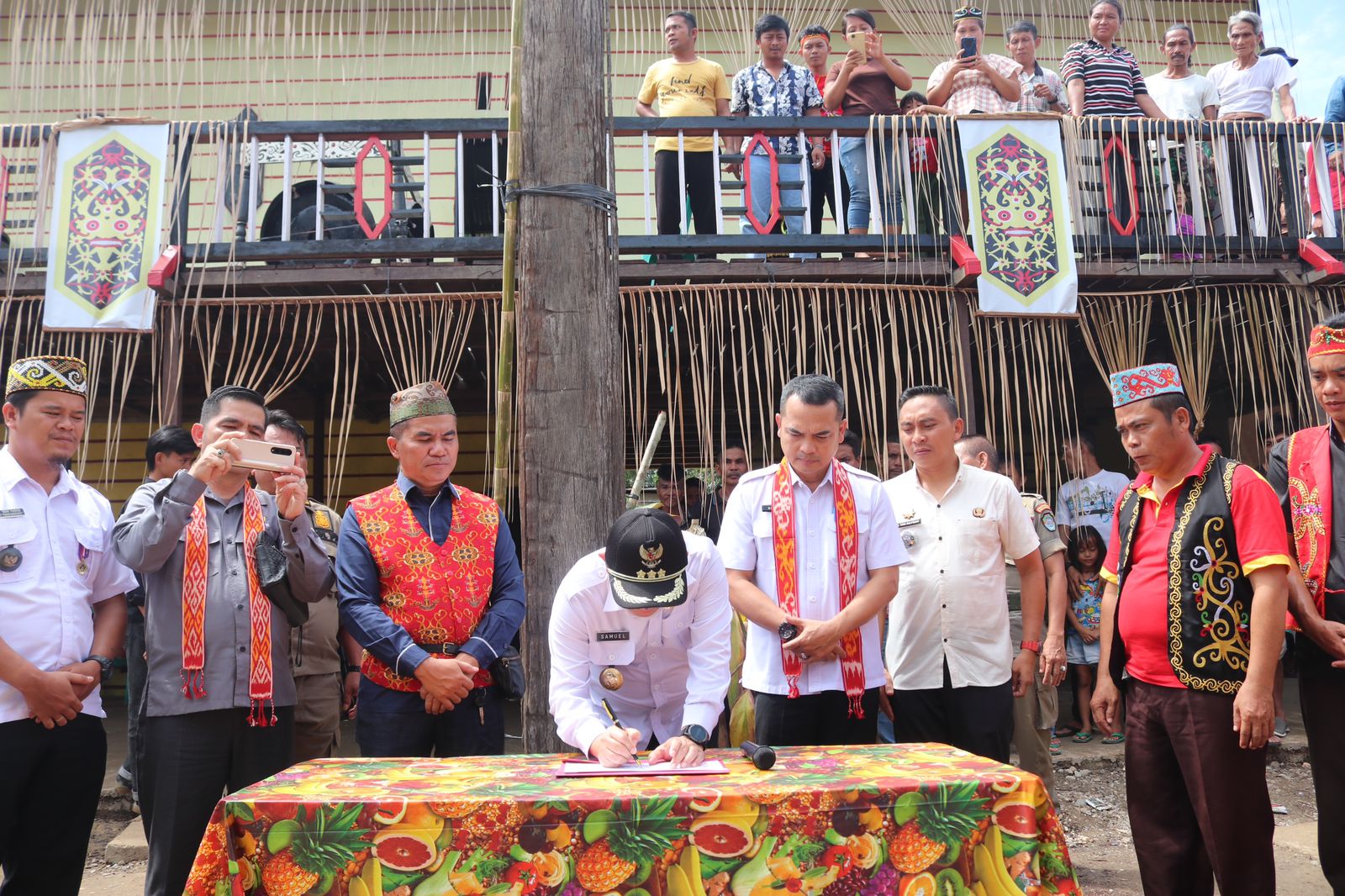 LANDAK – Pj. Bupati Landak Samuel meresmikan Gedung Balai Adat Dusun Tauk, Desa Engkangin, Kecamatan Air Besar, Rabu (07/06).